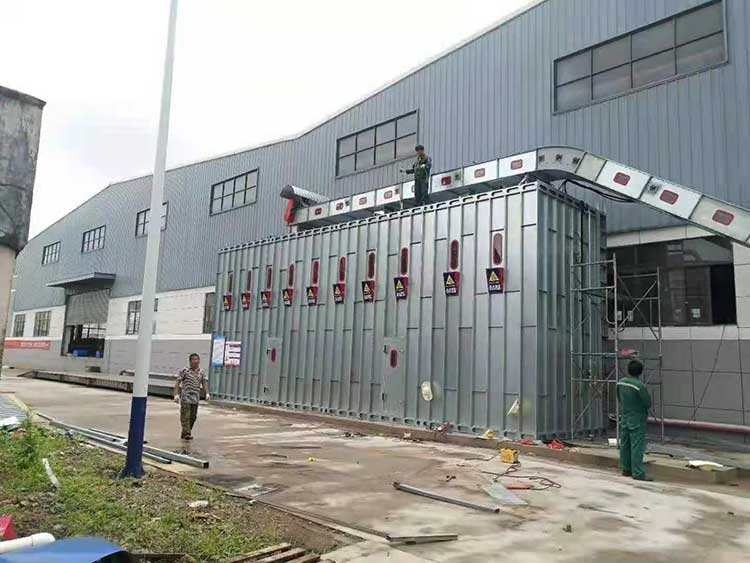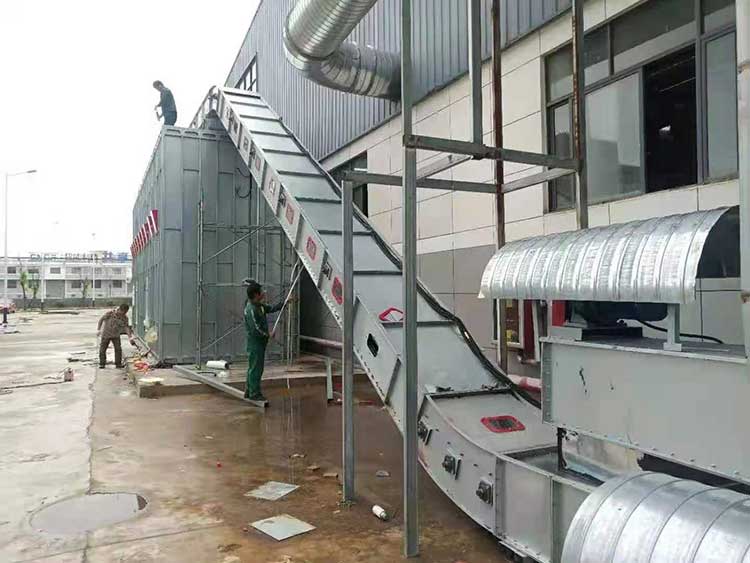 5、火情檢測盒滅火系統(tǒng):設(shè)備出風(fēng)口設(shè)置火情檢測探頭用于火情檢測。滅火噴淋裝置安裝于主風(fēng)筒內(nèi),用于滅火,以有效保護(hù)系統(tǒng)的運(yùn)行安全。探測器探測到火情時,立即報警,關(guān)閉主機(jī),同時開啟消防泵進(jìn)行噴淋滅火。