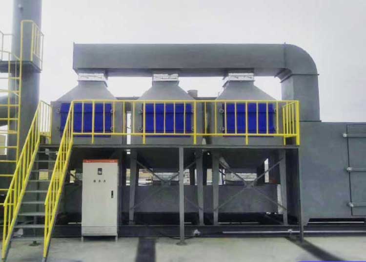 噴槍中噴出的水性漆,絕大部分附著在所噴工件表面,還有一小部分飄散在空氣中,處理VOCs之前必須將漆霧顆粒處理干凈,若漆霧顆粒吸附到活性炭表面,會導(dǎo)致系統(tǒng)運行不暢,活性炭吸附性能降低,及活性炭使用壽命變短等問題。