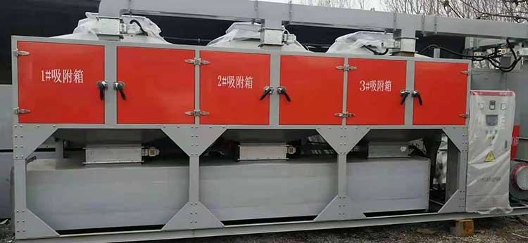 中的水分子及少量顆粒物,然后出來的氣體直接進(jìn)入活性炭吸附濃縮催化燃燒一體化裝置。