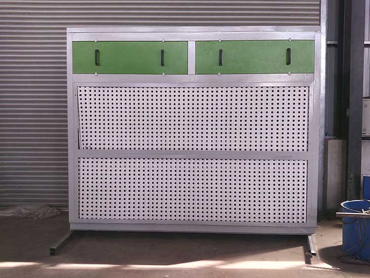 環(huán)保干式噴漆柜,用折流式過濾板及纖維過濾棉相結(jié)合方式過濾漆霧,是適用于干式噴漆房內(nèi)的一種新型環(huán)保產(chǎn)品,它采用了慣性分離技術(shù),可有效吸收噴漆車間的漆霧,過濾氣流先經(jīng)過V型過濾紙或迷宮式紙盒,在過濾中氣流多次改變流動方向,這樣那些比空氣重的顆粒會粘附在過濾層上,不會隨氣流而帶走。剩下部分細(xì)小顆粒經(jīng)過纖維過濾棉進(jìn)行二次過濾,這樣漆霧凈化效果高達(dá)98%以上。初步凈化的廢氣然后通過活性炭吸附箱或光氧催化分解后達(dá)標(biāo)高空排放.