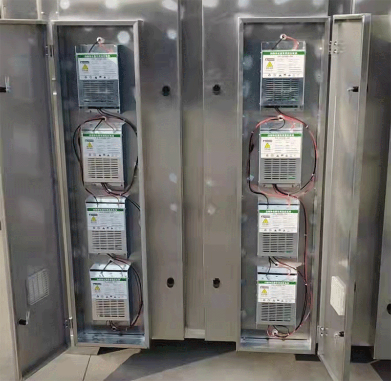 3、板式電場主要利用的是類似平板疊加的一個電離分離結(jié)構(gòu),板式電場分為電離區(qū)和吸附區(qū),相互分離的裝置,油煙廢氣首先經(jīng)過電離區(qū)進(jìn)行電離,油煙變成帶正電荷的粒子,從而進(jìn)入吸附區(qū),帶正電荷的油煙粒子在吸附區(qū)從而因電場力的作用被吸附,從而達(dá)到凈化的效果。