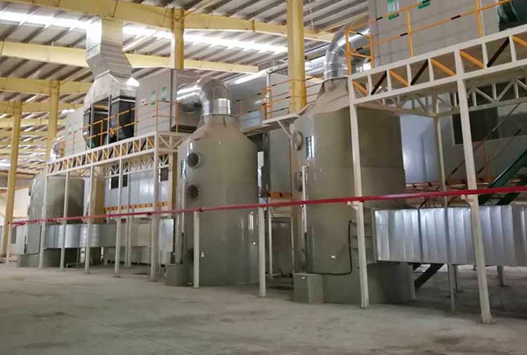 四、噴漆房廢氣處理的工藝有很多種,本案例施工地點(diǎn)在江蘇南通,佑泰環(huán)保設(shè)計(jì)的廢氣處理工藝流程如下:排出的有機(jī)氣體→進(jìn)入風(fēng)管→經(jīng)過(guò)噴淋塔→活性炭環(huán)保箱→光氧催化裝置→風(fēng)機(jī)→風(fēng)管→達(dá)標(biāo)排放。