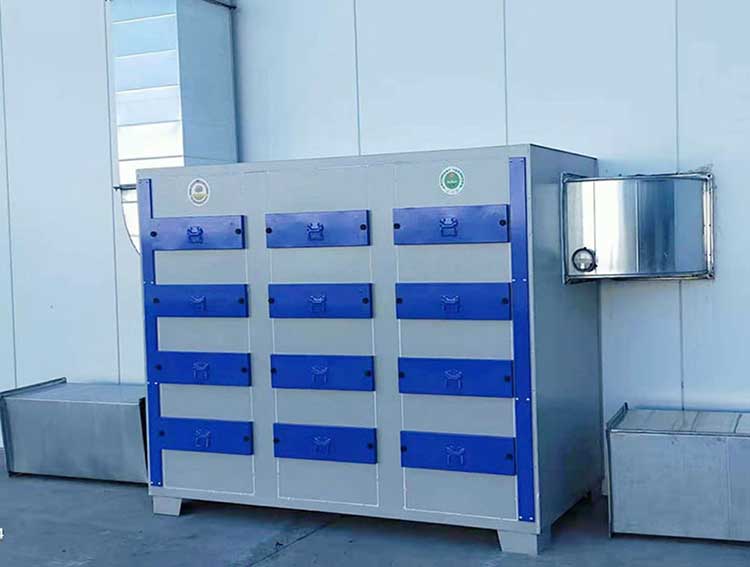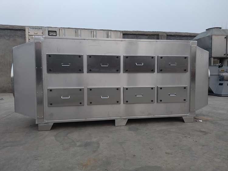 二層為活性炭吸附,活性炭具有合理的孔隙結(jié)構(gòu),良好的吸附性能,機械強度高,易反復(fù)再生,造價低等特點;用于有毒氣體的凈化,廢氣處理,工業(yè)和生活用水的凈化處理,溶劑回收等方面?;钚蕴吭谶\輸過程中,防止與堅硬物質(zhì)混狀,不可踩、踏,以防炭粒破碎,影響質(zhì)量。亦要防止水浸,因水浸后,大量水充滿活性空隙,使其失去作用。另外避免焦油類物質(zhì)帶入活性炭床,以免堵塞活性炭空隙,使其失去吸附作用。