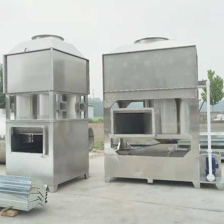 在離心力的作用下,氣旋式噴淋塔內(nèi)含塵氣橫向向心運動,含塵氣停留時間長,洗滌效果好,徹底地解決了噴淋塔在某些特定條件下存在著除塵不徹底、水噴淋塔易堵塞等工藝缺陷。能有效地避免水泵和噴頭的堵塞,極大地提高生產(chǎn)效率,其中水池的水可以循環(huán)利用,避免了二次污染帶來的困擾,更加節(jié)約水資源。