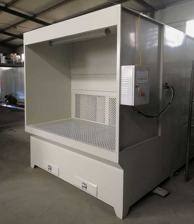 多工位打磨吸塵工作臺工作時,把工件放在工作臺面上打磨,在排風(fēng)機(jī)的抽吸作用下,將工件上打磨出來的粉塵、灰塵等物吸入機(jī)內(nèi),打磨出來的粉塵不會在操作者的呼吸處停留,而隨抽風(fēng)的氣流迅速抽進(jìn)主機(jī)里,帶有粉塵的氣流通過百味窗透過濾芯排風(fēng)過濾系統(tǒng)流向機(jī)外,粉塵顆粒經(jīng)過濾芯過濾后掉下主機(jī)的集成箱里,干凈的空氣排出。還有一部分氣體通過回風(fēng)道經(jīng)過風(fēng)口棉,再次過濾吹到工作臺面,從而達(dá)到循環(huán)的***佳效果。這樣大大改善了工作環(huán)境。