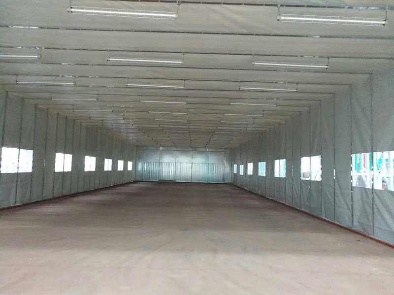 移動(dòng)伸縮房主要由軌道,移動(dòng)框架室體,房體密封布,電控箱等組成。移動(dòng)伸縮房的長寬高根據(jù)實(shí)際需求定制,伸縮房密封布防水,抗拉,阻燃。如果應(yīng)用在易爆環(huán)境電機(jī)及LED燈均具有防爆性能。