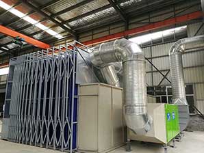 2、 排風(fēng)及漆霧凈化系統(tǒng):水旋噴漆室、活性炭吸附設(shè)備、防爆排風(fēng)機(jī)、排風(fēng)管道等。