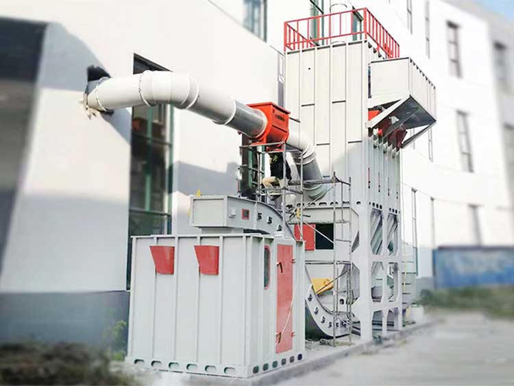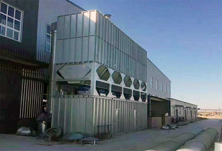 在車間各揚塵點采用吸罩通過吸塵管道進入布袋除塵器,后通過布袋再次收集,經(jīng)過過濾后的凈化氣體通過風機排出。