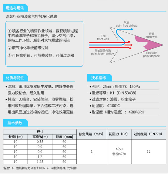 V型干式過濾紙,又稱油漆過濾紙,漆霧過濾紙、折疊式過濾紙板。是使用于干式噴漆房?jī)?nèi)的一種環(huán)保型產(chǎn)品,可有效過濾油漆類,油類,玻璃原料,環(huán)氧樹指,柏油,鐵弗龍,液化工件,塑膠,烤瓷,染料,涂裝類廢氣顆粒,過濾效果高達(dá)90%以上,在噴房工作環(huán)境要求較高或者濕度較大時(shí)使用仍然有效果。