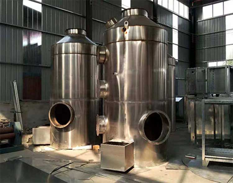 一般情況下,噴塔由耐腐蝕材料制成,如玻璃鋼,不銹鋼, pp噴塔等。工業(yè)尾氣一般為含酸、堿等腐蝕性氣體,采用防腐材料是為了使設(shè)備在運行過程中不受腐蝕。本實用新型造價低,占地面積小,操作維護方便,尤其適合處理高溫高濕、易燃易爆等含塵廢氣。