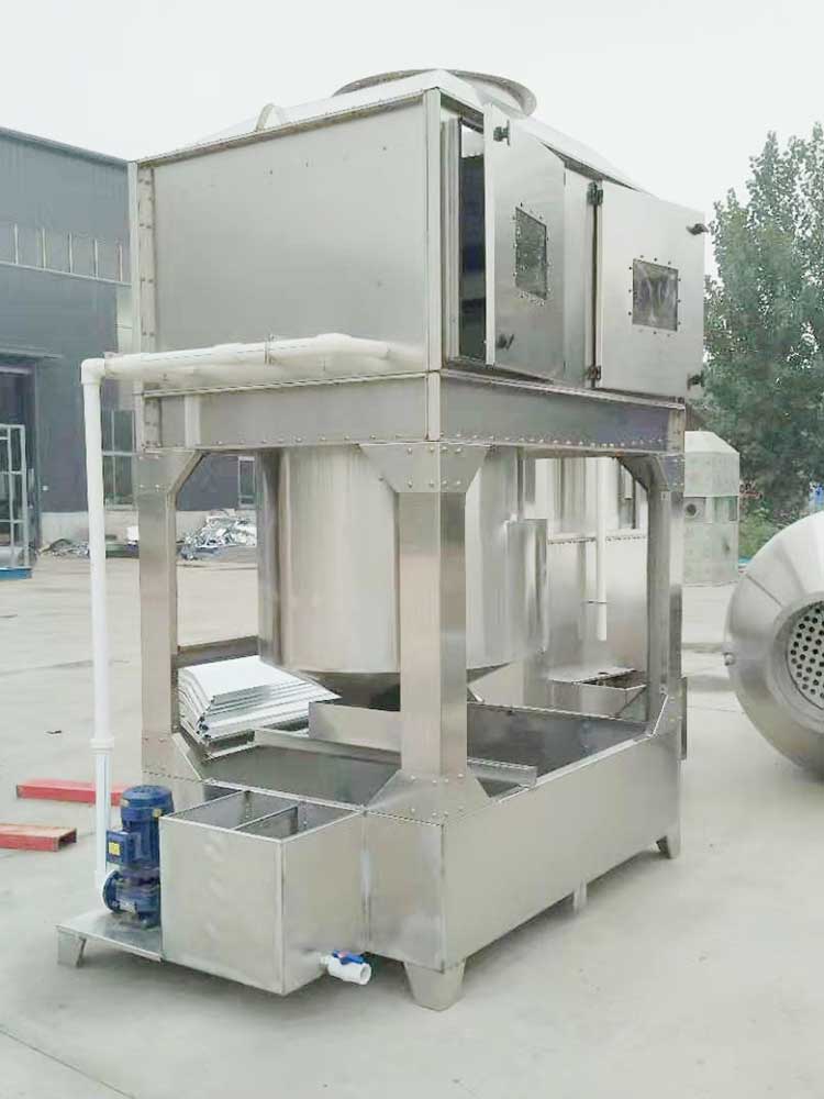 含塵廢氣由風管引入凈化塔,經過旋轉洗滌桶時風帶加快,帶動填料球飛帶運轉,在洗滌桶里,含塵廢氣與水霧沖鋒混合洗滌、中和反應(水里面補充有酸堿時),廢氣經過凈化后,再經除霧層脫水除霧后由風機排入大氣或再進入其他凈化設備(光氧催化、低溫等離子等)、吸收液再塔底經水泵增壓后在箱頂噴淋霧化而下,***后回流至箱底循環(huán)使用,凈化后的廢氣達到國家排放標準。