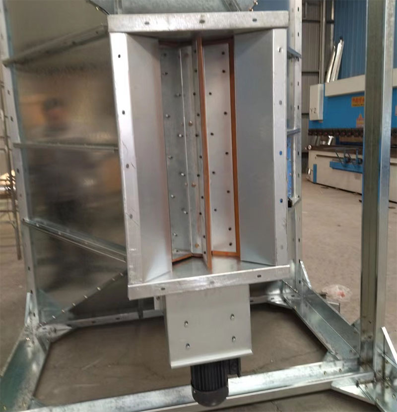 灰斗傾角不宜小于55~60°,且內(nèi)壁要光滑,四個轉(zhuǎn)角處***好焊接R=200的圓弧形鋼板,消滅“死角”。灰斗壁安裝振打器,每個灰斗配備兩個1.1KW電振機,同時每只灰斗裝一個可用大錘敲打的在水平方向伸出灰斗加固筋外緣300mm的垂直打擊面,其安裝位置在灰斗捅灰也相鄰的側(cè)壁上。